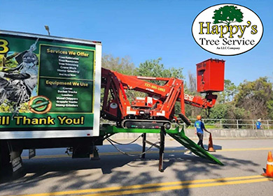 At Happy’s Tree Service, safety and professionalism come first. Every project is carefully planned to protect your property and the health of your trees. Our equipment allows us to reach difficult areas without damage, ensuring precision results and a clean, thorough job from start to finish.